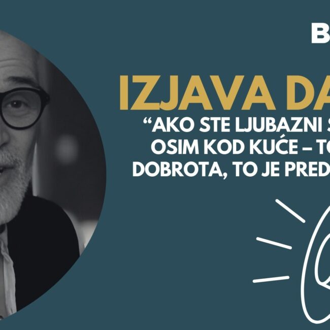 IZJAVA DANA: „Ako ste ljubazni svuda osim kod kuće – to nije dobrota, to je predstava“...