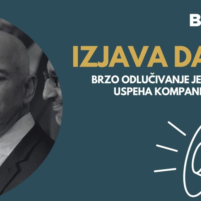 IZJAVA DANA: Brzo odlučivanje je ključ uspeha kompanije
