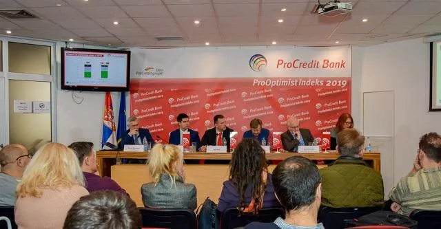 Rezultati istraživanja, koje je ProCredit banka u saradnji sa istraživačkom agencijom IPSOS Strategic Marketing sprovela među malim i srednjim preduzećima i preduzetnicima u Srbiji, pokazuju da indeks poslovnog optimizma za 2019. godinu iznosi 60,1 odsto što znači da domaći privrednici u većem procentu imaju pozitivna očekivanja. Istraživanje pokazuje i da je indeks poslovnog optimizma preduzeća koja sarađuju sa Nemačkom stabilan i iznosi 68,4 odsto.