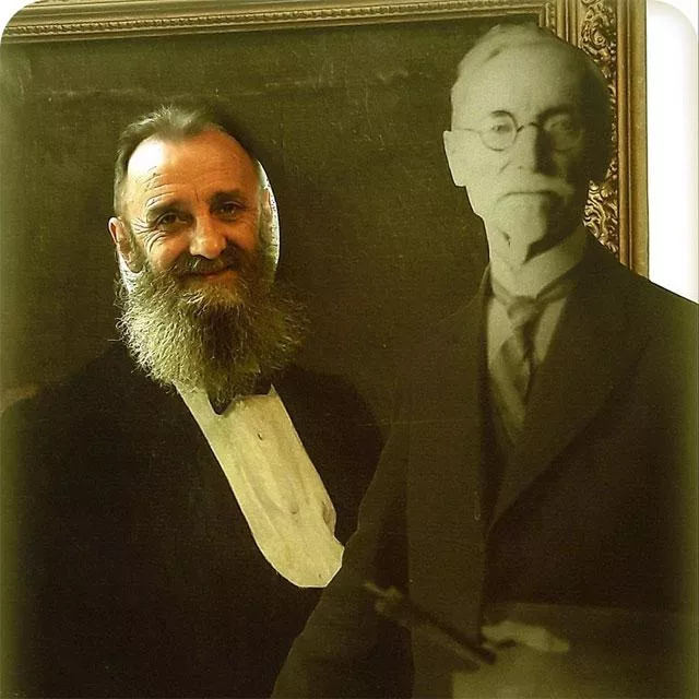Dvojica rođenih 7. decembra u istom ramu. Pritom je model na slici mlađi od slikara 98 godina. A na fotografiji imaju isti broj godina.