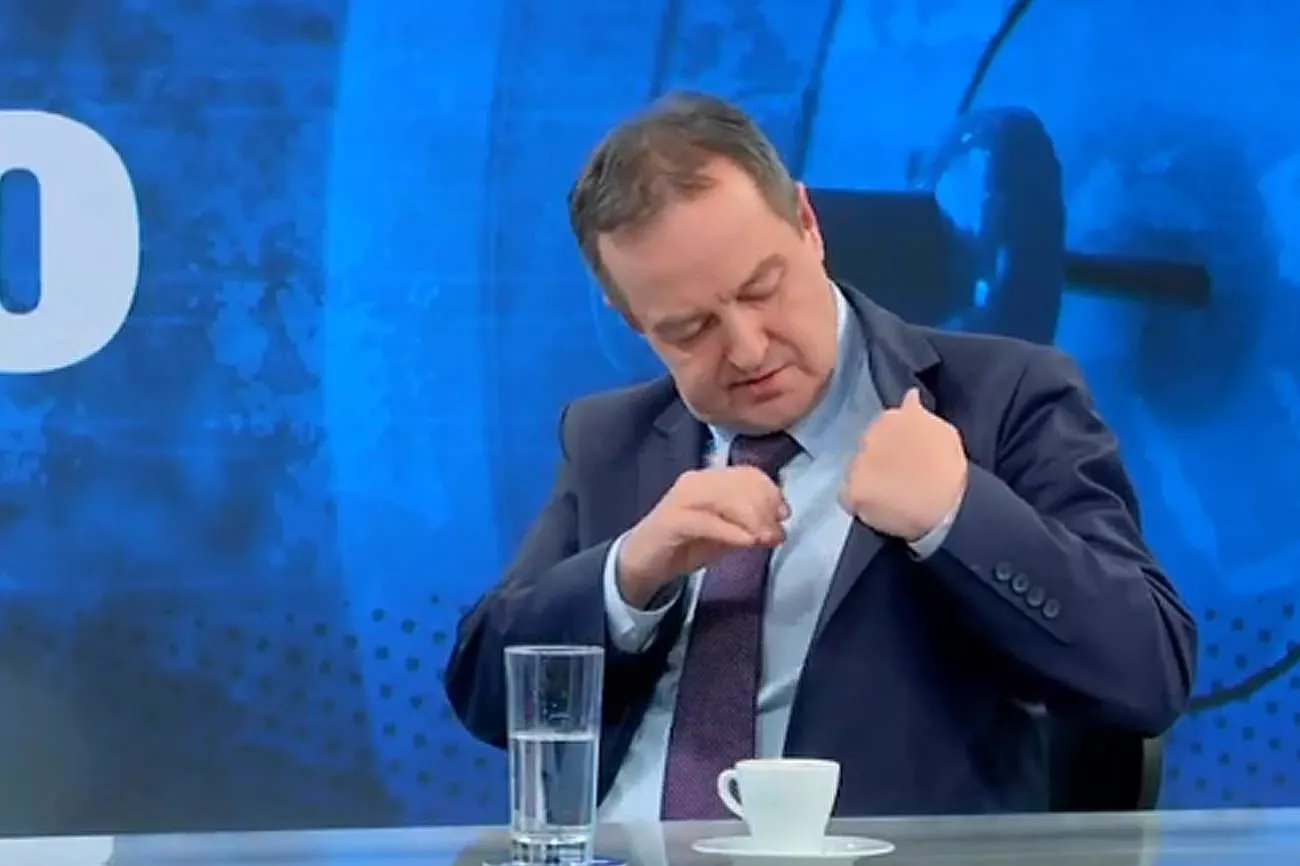 Novi stari šef srpske diplomatije, izrevoltiran što mu voditeljka „ne dozvoljava“ da završi misao, u jednom trenutku je počeo da skida „bubicu“ i dodao: „Pa dobro, ja neću više ni da govorim. Doviđenja!“