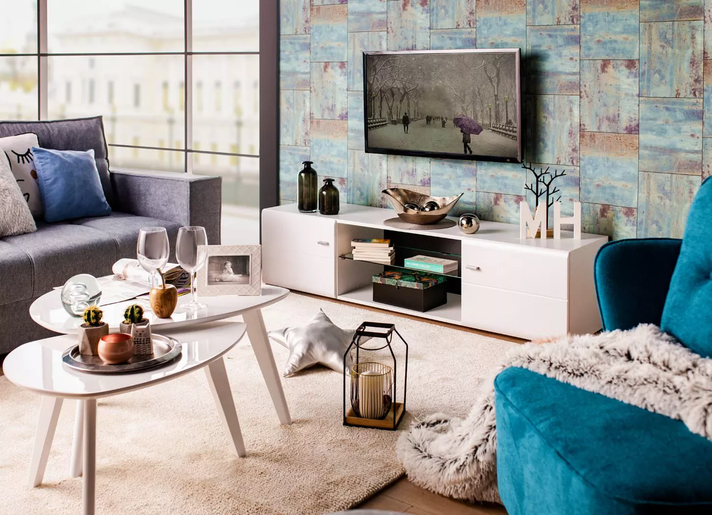 U ambijent dnevne sobe svetlijih kolorita, sjajno možete uklopiti TV policu REX, u opak belom dezenu sa belom lak folijom, koja je odraz savremenog dizajna sa sofisticiranim notom. Dizajneri enterijera Forma Ideale predlažu kombinaciju klub stola M21 80×60 i klub stola M21 70×50 kao praktičan izbor koji će doprineti celokupnom izgledu dnevne sobe, unoseći svojim oblikom dinamiku, dok će ujedno doprineti i definisanju modernog stila u njenom uređenju.