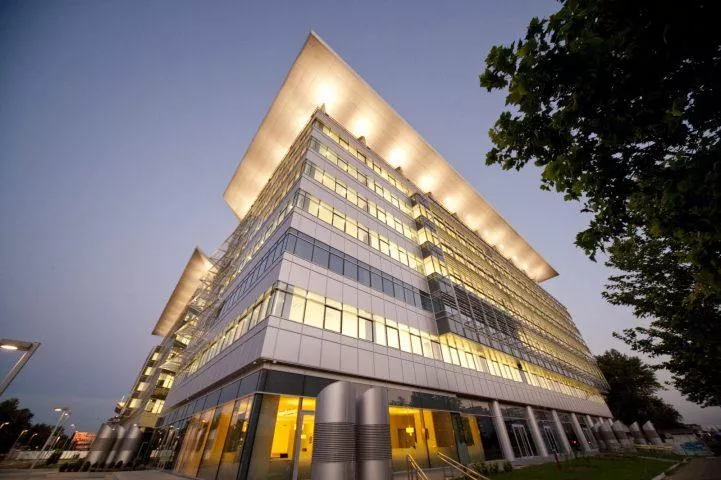 Blue Center, jedna od najmodernijih poslovnih zgrada A+ klase u Beogradu, zauzima površinu od skoro 50.000 metara kvadratnih, od kojih je više od 32.000 namenjeno za izdavanje pre svega kancelarijskog prostora. Ova prvoklasna poslovna zgrada nalazi se na uglu Bulevara Mihaila Pupina i Ulice španskih boraca na jednoj od najboljih novobeogradskih lokacija, odlično povezana sa svim bitnim delovima grada. Činjenica da poseduje i britanski „Brim“ (BREEAM) sertifikat – potvrdu o energetskoj efikasnosti, najvišim sigurnosnim standardima, minimalnim troškovima održavanja i poslovanja, kao i štetnosti svom okruženju – Blue Center svrstava u red malobrojnih „zelenih“ zgrada tog tipa u Evropi.