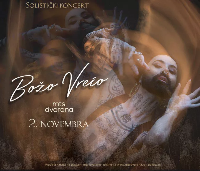Poznati regionalni izvođač sevdalinki Božo Vrećo, vraća se ponovo pred beogradsku publiku koncertnim nastupom 02. novembra u mts Dvorani. Umetniku čarobnog glasa, poznatom po a kapela izvođenju sevdalinki i kombinacijama tradicionalnog sevdaha sa elementima džeza, soula i bluza,kao i originalnim nastupima, ovo će biti treći solo nastup na kultnom mestu.