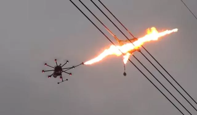 Kineska komunalna kompanija iz Sjangjanga, u pokrajini Hubej, proširila je dijapazon korisnosti ovih letelica budućnosti, tako što im je prikačila – bacač plamena.