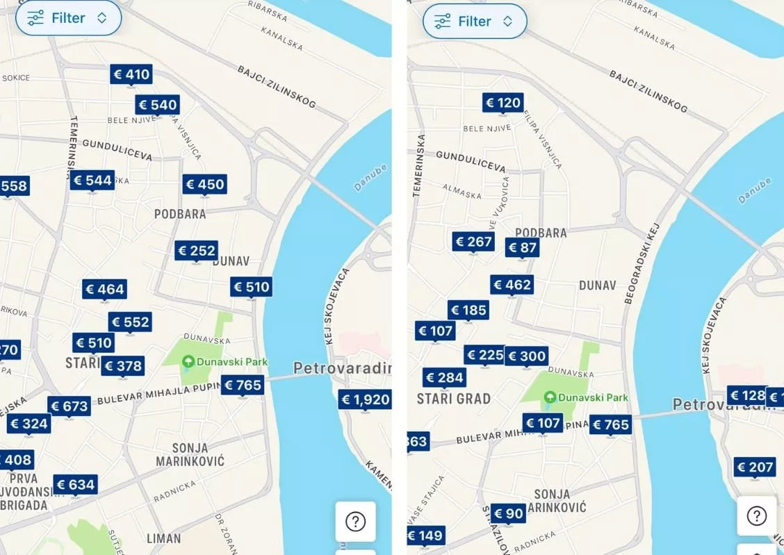 Kada je reč o Bookingu, tri noćenja u DR Apartmanima u Patrijarha Rajačića 23 su 44.469 dinara, što iznosi oko 380 evra. Taj smeštaj je malo dalje od Petrovaradinske tvrđave, dok je jedinica za izdavanja koja je bliže mestu održavanja festivala logično skuplja. Na primer, Apartman Exit Petrovaradin blizu tvrđave košta 53.082 dinara, odnosno 453 evra za tri noći.