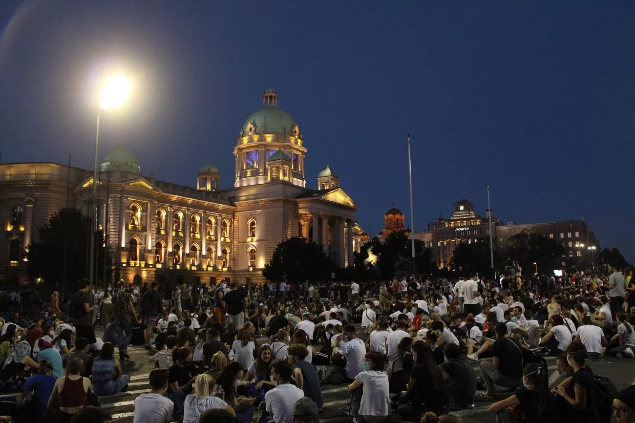 Više hiljada ljudi okupilo se i četvrti dan zaredom na protestima ispred Skupštine Srbije. Demonstranti su se okupili u centru grada uprkos odluci Kriznog štaba o zabrani okupljanja više od 10 ljudi.