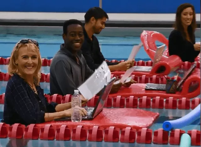 Rič Levis, koji vodi tu kancelariju u bazenu, kaže da je gledao svoj tim kako se trudi da na različite načine sebi obezbedi udobnost, a da je čak za njega radio i frilenser koji je ležao tokom radnog vremena, ali da se sve promenilo kada su se „preselili“ u bazen.