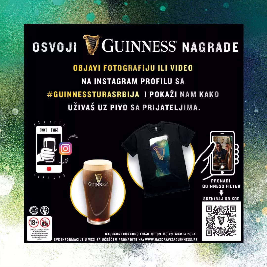 Ove godine Guinness poziva sve ljubitelje kvalitetnog piva da podele jedinstvene trenutke na društvenim mrežama, a oni koji žele mogu da isprobaju i Guinness filter koji mogu pronaći tako što će skenirati QR kod. Aktivacija će trajati u periodu od 9. do 23. marta 2024. godine, a svi zainteresovani više mogu da saznaju na portalu www.nazdravizaguinness.rs.