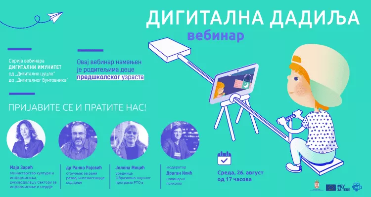 Vebinar predstavlja nastavak serijala „Digitalni imunitet – od digitalne cucle do digitalnog buntovnika“, a namenjen je roditeljima i vaspitačima dece predškolskog uzrasta.