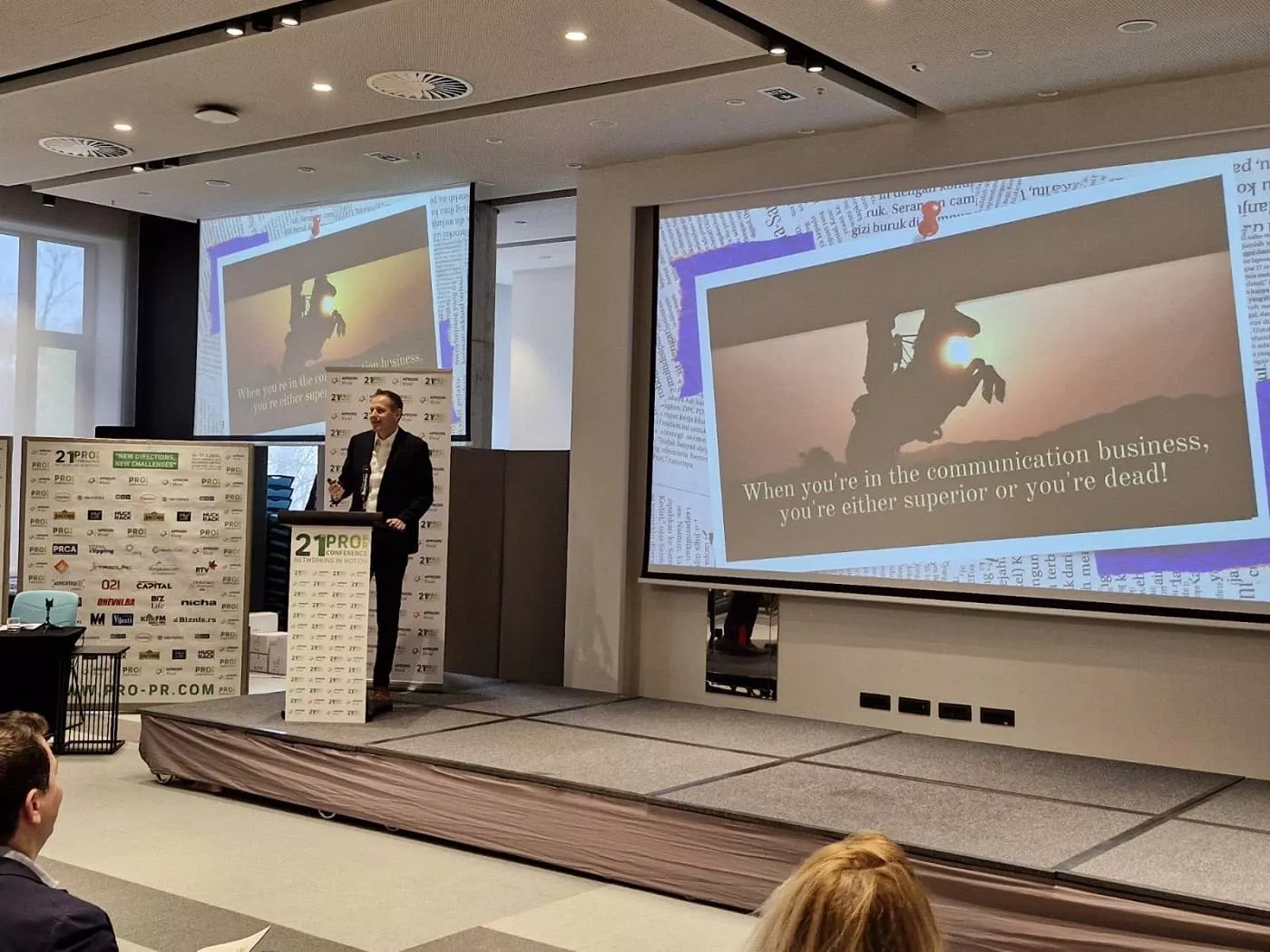 Međunarodna PRO PR konferencija, 21. po redu, otvorena je danas u beogradskom hotelu Mona Plaza. Konferencija će u tri dana okupiti 220 učesnika iz 16 zemalja. Na konferenciji je govorio i direktor Represent Systema Borislav Miljanović. Kao jedan od lidera u svetu komunikacija održao je predavanje pod nazivom „Kad se baviš komunikacijskim poslom, ili si superioran ili si mrtav!“