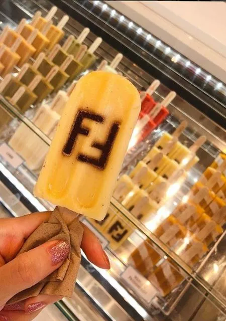 Sladoled na štapiću ima urezan logo italijanskog brenda Fendi (duplo F) na jednoj strani. Ovo implicira da većina ljudi koji se bave modom ipak pojedu nešto s vremena na vreme – što je, priznaćete, vrlo iznenađujuće.