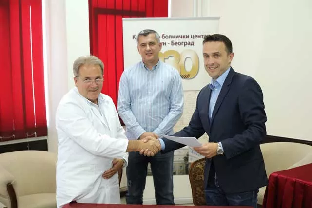 Potpisivanju ugovora o donaciji prisustvovali su Dejan Matić, predsednik Opštine Zemun, prof. dr Dragoš Stojanović, direktor KBC Zemun-Beograd i Nemanja Romandić, direktor kompanije Roma Company.