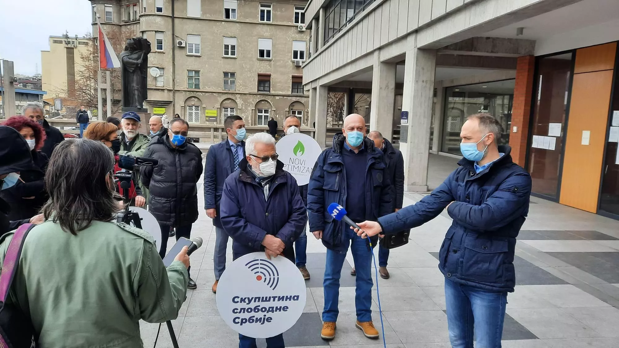 Panić je tužbu podneo privatno, u svoje ime. Njega su došli da podrže prijatelji iz Skupštine slobodne Srbije i pokreta Novi Optimizam.