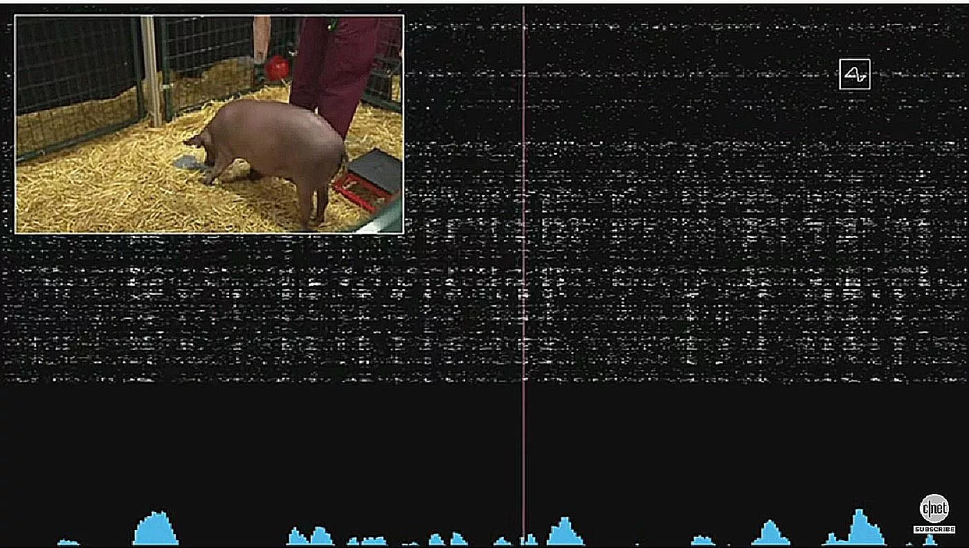 Milijarder je u video prenosu prikazao tri svinje u čije mozgove su ugrađena po dva čipa veličine novčića i opisao ih kao „zdrave i srećne svinje koje se ne razlikuju od drugih „.