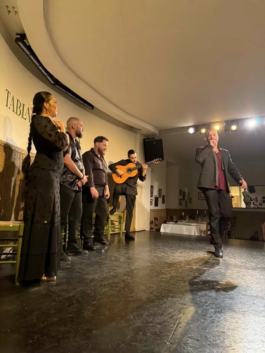 Često se dešava da tradicionalne umetnosti budu svedene na šablone za turiste – bleštavi kostimi i koreografije bez duše. Uprkos toj bojazni, poverenje u preporuku me nije izneverilo. Tablao u koji sam kročio bio je svega nekoliko koraka udaljen od gradske vreve, mali i topao prostor u kojem publika sedi nadomak izvođača. Minimalistička postava na sceni – jedan plesač, jedna plesačica, dva pevača i jedan gitarista – na prvi pogled nije obećavala spektakl. Međutim, čim su prve note zazvučale, atmosfera se ispunila uzbudljivom napetošću.