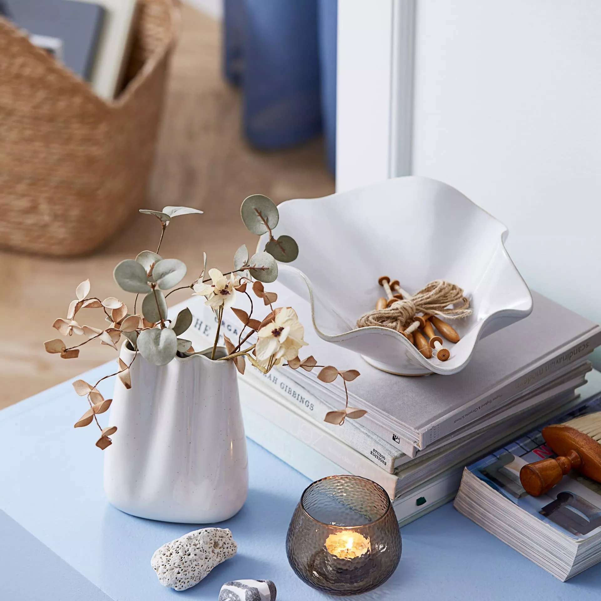 Vaze su sjajan način da prirodu integrišete u svoj životni prostor, budući da mogu biti izuzetno svestran alat i vaš saveznik. U elegantnoj, a ipak jednostavnoj kaki boji, staklene ili od bele keramike, ove vaze pružaju idealnu pozornicu za svaki buket. Posebno se ističu vaze originalnog oblika, poput ovalnih sa tri otvora, koje omogućavaju različite kombinacije cveća po grupama.