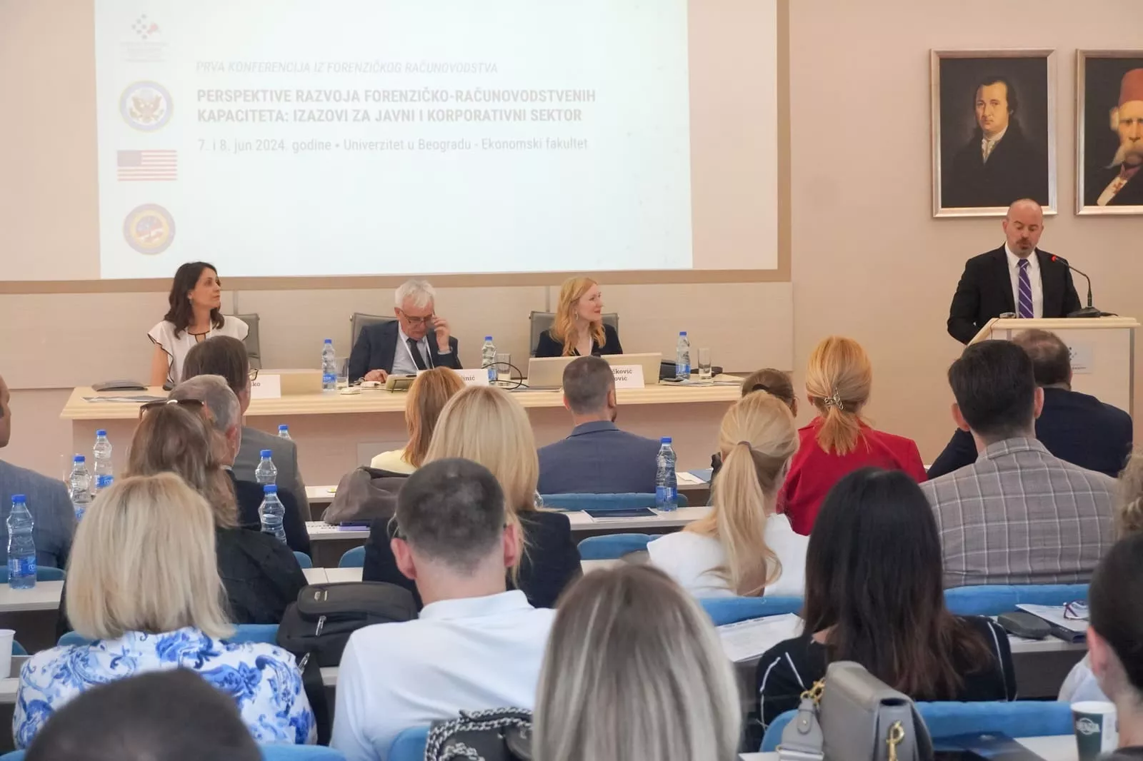 Konferenciju je otvorila Prof. dr Žaklina Stojanović, dekanica Ekonomskog fakulteta, koja je pozdravila sve prisutne goste i učesnike, naglasivši tradiciju Fakulteta, kao i spremnost da kao institucija od integriteta ide u korak sa potrebama privrede i društva. U tom smislu je navela kao značajan korak upravo akreditovanje prvog specijalizovanog master programa iz oblasti forenzičkog računovodstva, zahvalivši se na pomoći i podršci Ambasadi Sjedinjenih Američkih Država i INL-u. Istakla je da će Ekonomski fakultet Univerziteta u Beogradu i ubuduće podržavati konferencije i različite vidove edukacije na temu forenzičkog računovodstva.