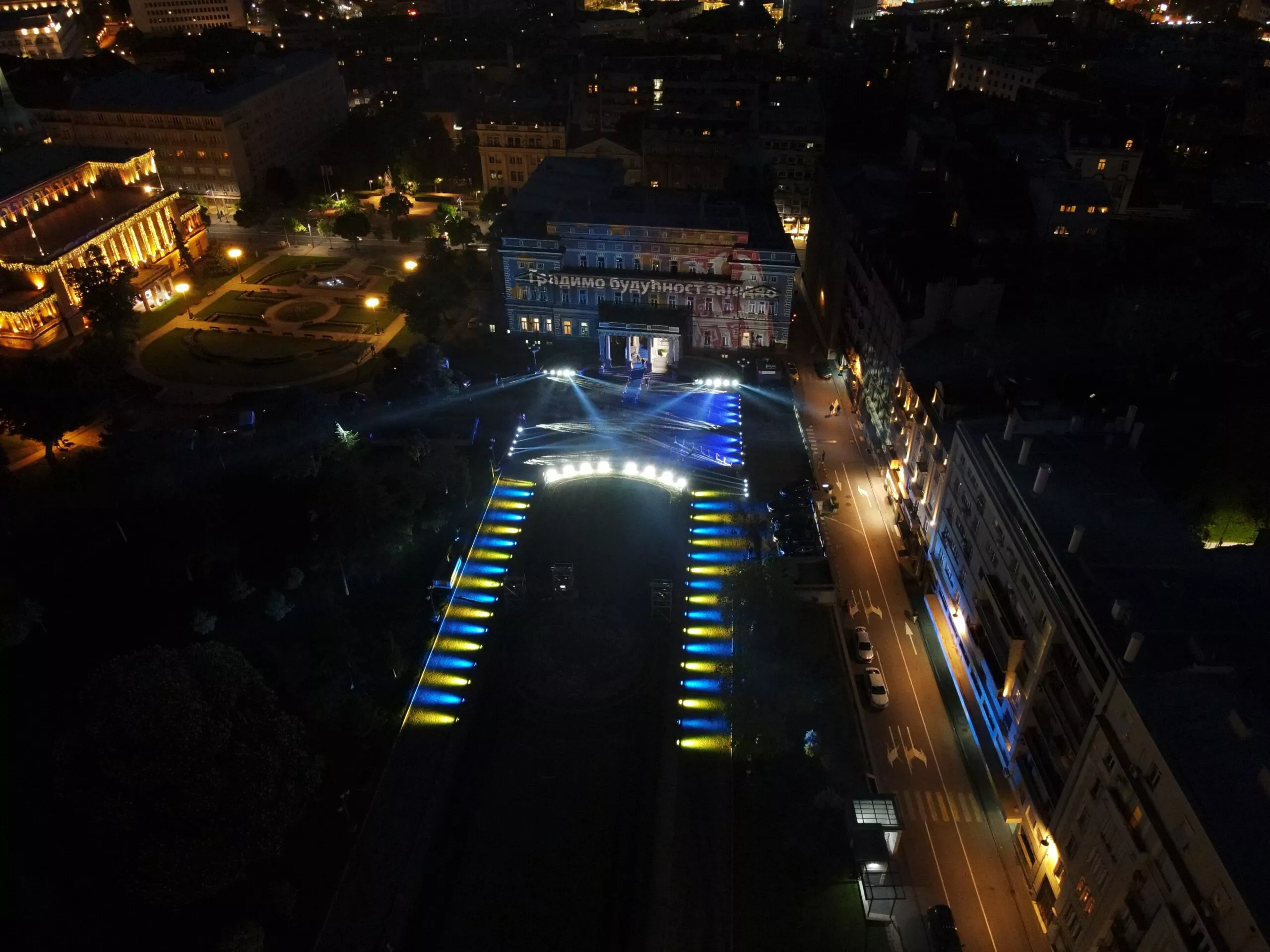 Povodom proslave Dana Evrope, Beograd je u subotu uveče bio osvetljen bojama Evropske unije.
