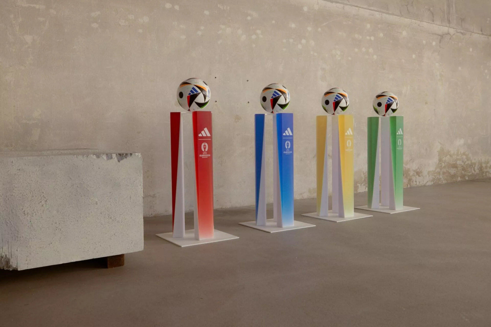 Harmonizacija aluminijumskih limova i boja lopte slave radost FUSSBALLLIEBE i jedinstvo timova koje okuplja, pa će tako biti viđene četiri verzije obeležavajući identitet gradova domaćina, zeleno, žuto i crveno postolje, pored plavog koje će videti gledaoci tokom utakmice našeg nacionalnog tima. Kao iznenađenje čuva se specijalno izdanje dizajna postolja za polufinalne utakmice u Minhenu 9. jula i Dortmundu 10. jula, kao i finale u Berlinu 14. jula.