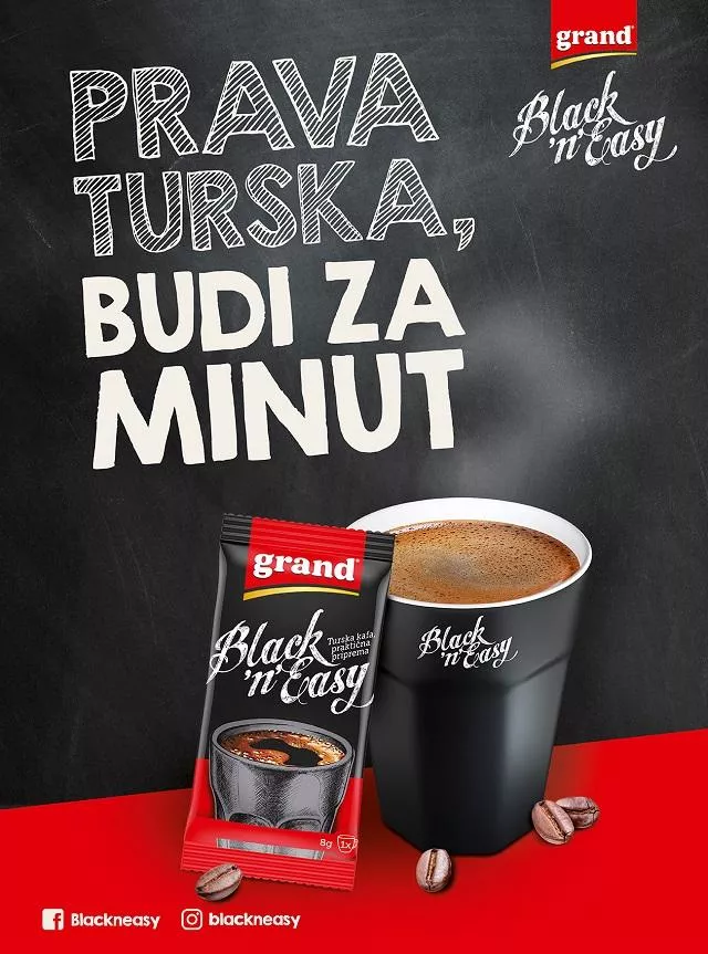 Kako bismo se efikasno razbudili i započeli dan na pravi način, tu je Grand Black’n’Easy. Zbog svoje brze i lake pripreme pravi je izbor onih koji su se odricali prve jutarnje, turske kafe usled velikog broja obaveza na početku dana. Baš zbog tih brojnih aktivnosti posebno je zgodno imati kod kuće veća pakovanja, jer su nam u svakom trenutku pri ruci, kad god je potrebno da se „razbudimo“.