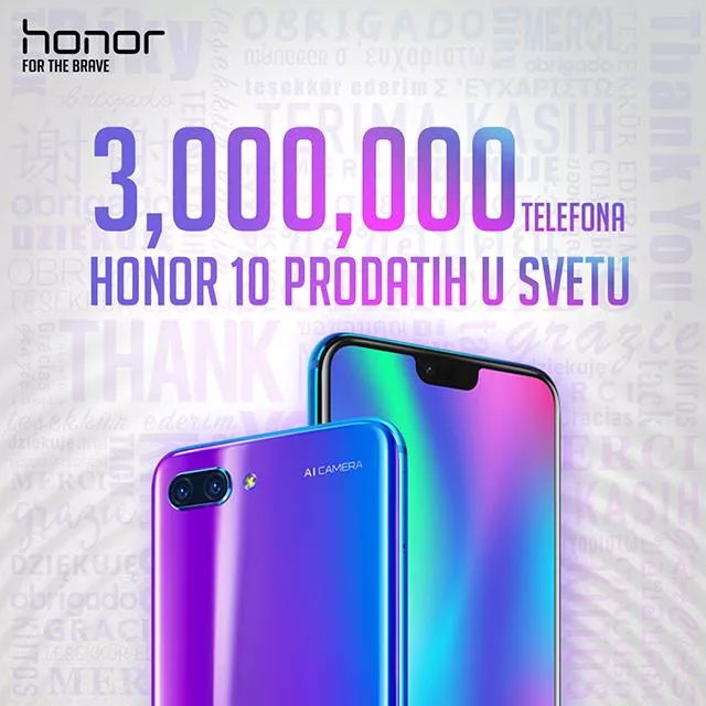 Glavni model ovog brenda, Honor 10, ostvario je najbolje rezultate, sa preko tri miliona komada prodatih od predstavljanja na tržištu pre par meseci. Honor 10, koji je pobrao sve pohvale, ima dve značajne inovativne karakteristike u odnosu na druge pametne telefone – kameru sa dvostrukim sočivom zasnovanu na vodećoj AI tehnologiji i revolucionarni dizajn sa 3D staklenom pozadinom koja se sastoji od impresivnih optičkih slojeva nano veličine. Globalni uspeh Honora 10 je prvenstveno ostvaren u Maleziji, gde je Honor 10 oborio rekord kao najbolje prodavani glavni model telefona na jednom vodećih prodajnih sajtova Shopee, Francuskoj, gde je Honor 10 zauzeo drugo mesto po onlajn prodaji i šesto u ukupnoj maloprodaji u rangu cena između 300 i 400 evra u maju, Rusiji, gde je Honor 10 najprodavaniji pametni telefon u rangu cena između 25.000 i 30.000 rubalja i rangiran je među prvih pet pametnih telefona na GfK listi i Nemačkoj, gde Honor 10 premašuje prodaju prethodnog modela, Honor 9, za više od 100 odsto.