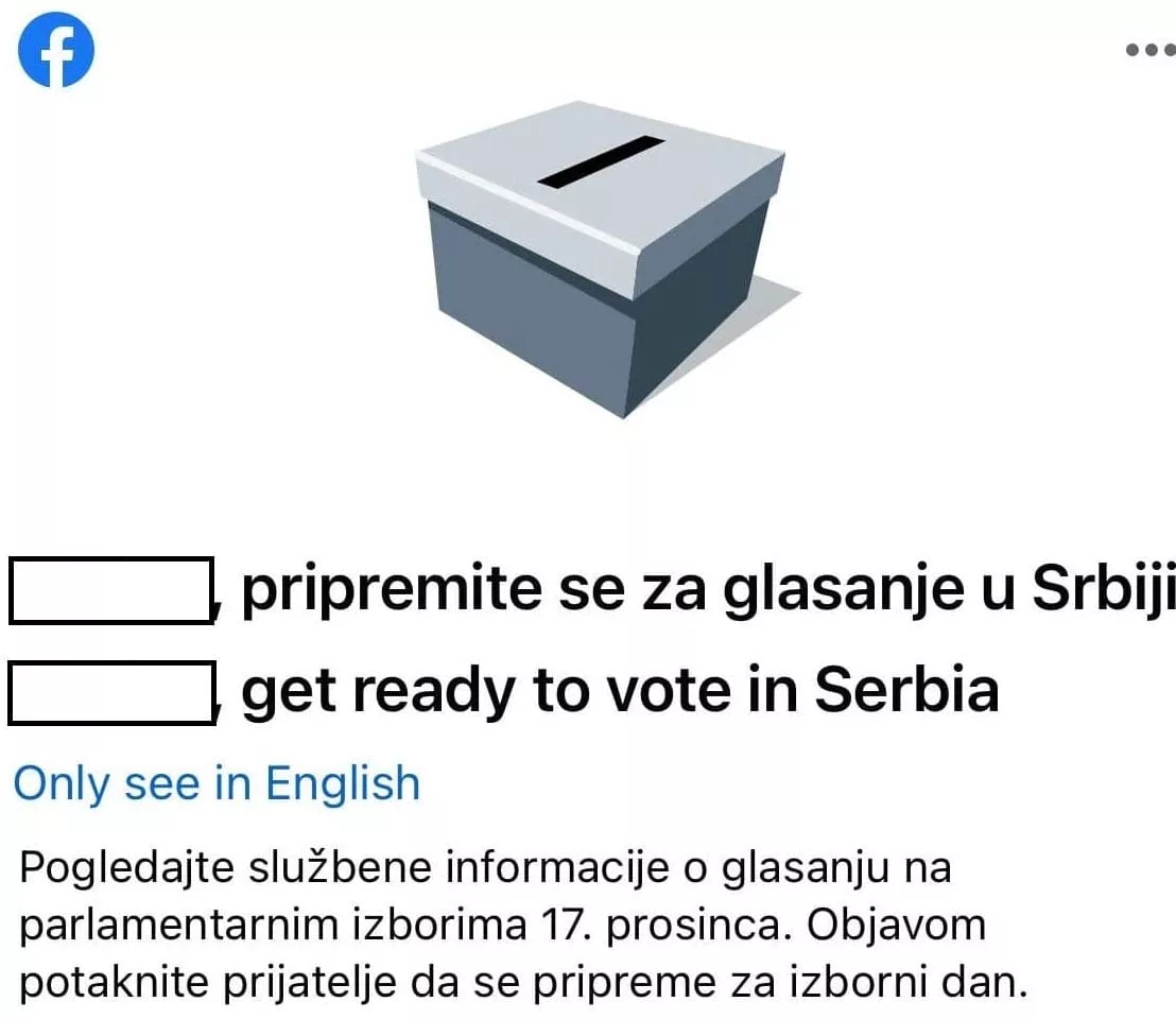 Uz poziv da korisnici odu do glasačkog mesta Facebook daje i link do sajta Republičke izborne komisije, koji je u ovom slučaju relevantan izbor informacija.