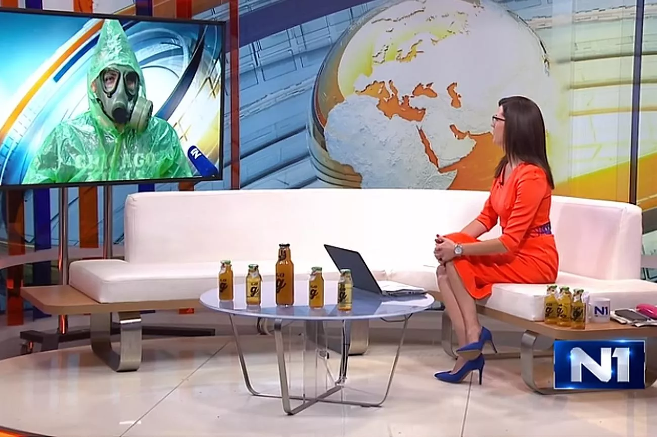 Krstić se na televiziji pojavio u punoj zaštitnoj opremi sa sve gas maskom.