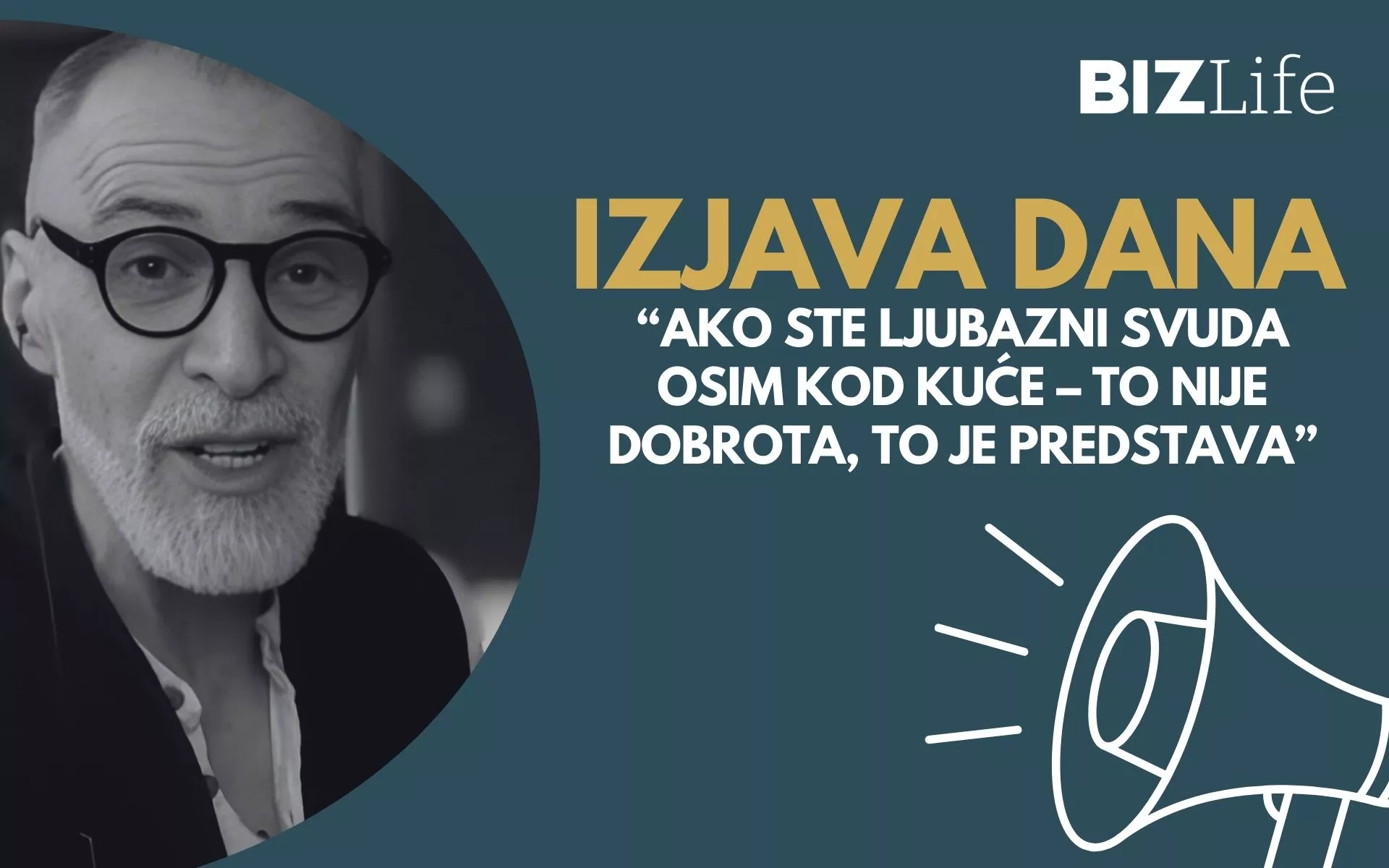 IZJAVA DANA: „Ako ste ljubazni svuda osim kod kuće – to nije dobrota, to je predstava“