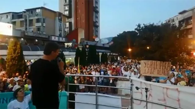 Neformalni vođa pokreta za odbranu reka Stare planine Ćuta Jovanović na jučerašnjem zboru „Reci ne MHE“ u Pirotu, organizovanom od strane Saveza mesnih zajednica Stare planine i građana, i internet grupe „Odbranimo reke Stare planine“ u znak protivljenja izgradnji malih hidroelektrana