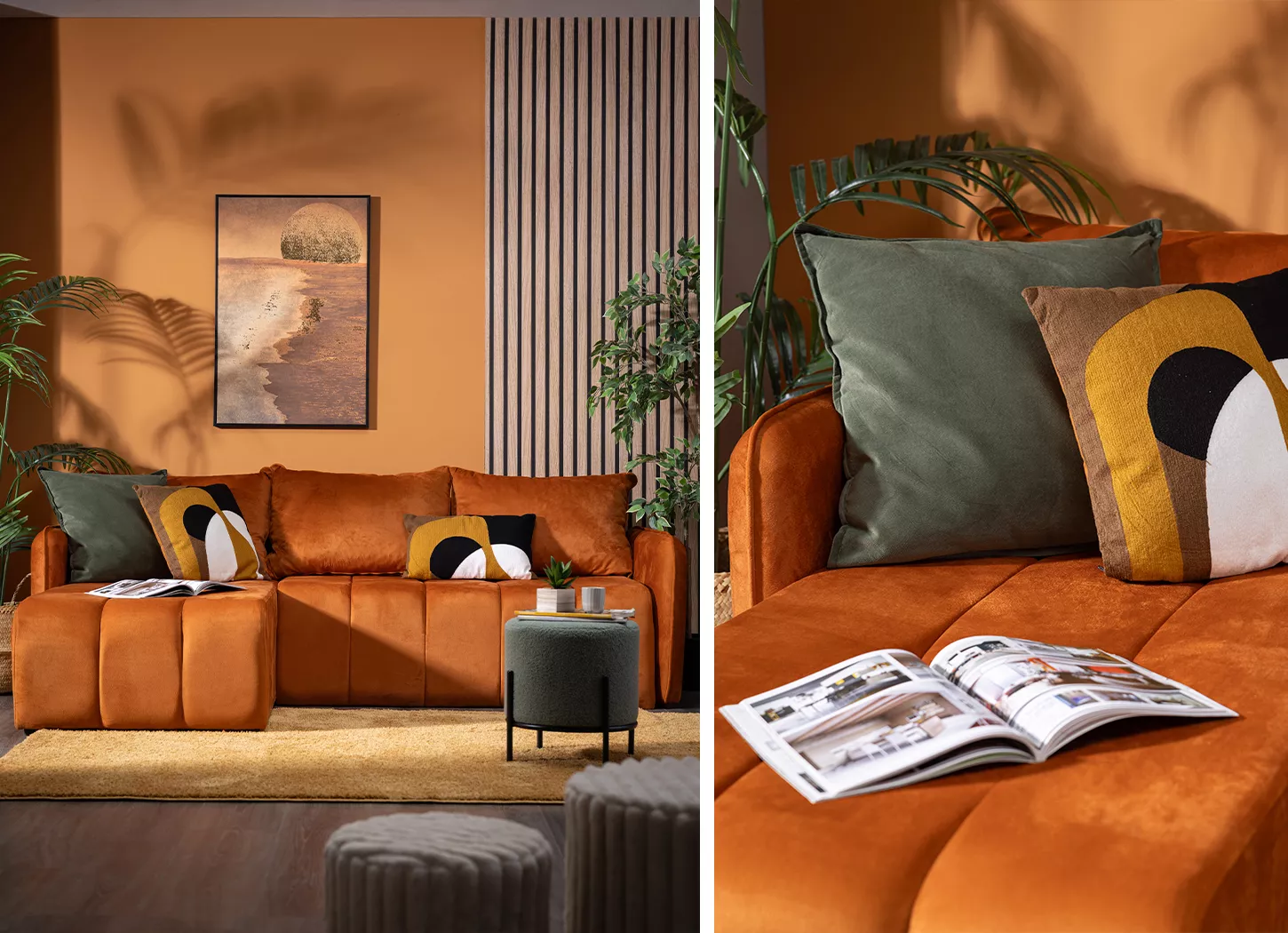 Ugaona garnitura GRANADA savršen je kutak za trenutke opuštanja i uživanja. Njene mekane, prijatne linije i savremeni, svedeni dizajn unose dozu elegancije i udobnosti u dnevni boravak, stvarajući topao prostor, idealan za jesenje ušuškavanje. Funkcionalnost garniture dodatno oduševljava – jednostavnim obaranjem naslona, ugaona garnitura GRANADA se pretvara u udoban ležaj, savršen za popodnevno dremanje uz miris čaja i šum kiše. Praktična kutija za odlaganje posteljine pomaže da prostor uvek ostane uredan i prijatan, dok njene uravnotežene proporcije omogućavaju lako uklapanje u različite stilove enterijera.