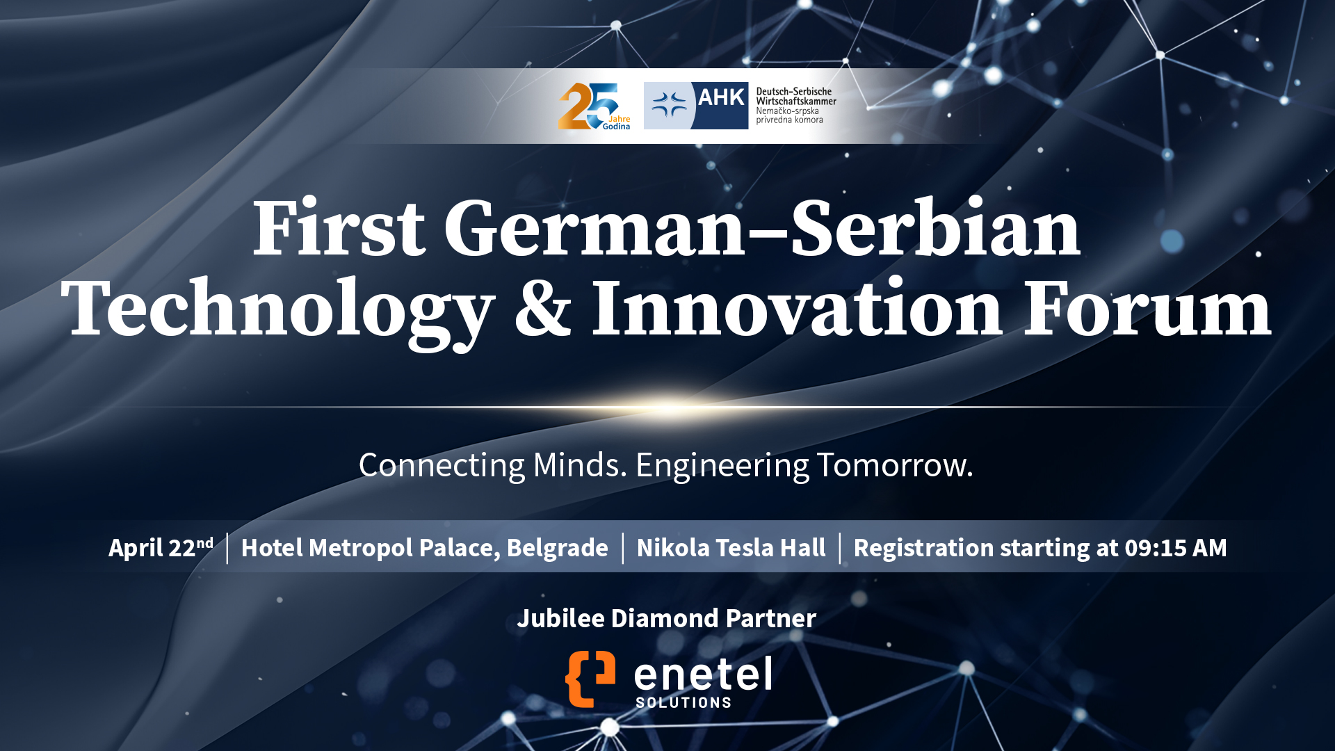 Svečani prijem 21. aprila predstavlja simboličan osvrt na četvrt veka kontinuiranog rasta i poverenja, tokom kojeg je Srbija postala jedan od relevantnih partnera nemačke privrede u regionu. Međutim, strateški značaj događaja prevazilazi ceremonijalni karakter i jasno se manifestuje kroz drugi dan, kada se održava Prvi nemačko-srpski forum o tehnologiji i inovacijama pod nazivom „Connecting Minds. Engineering Tomorrow“. Konferencija se održava u hotelu Metropol Palace u Beogradu.