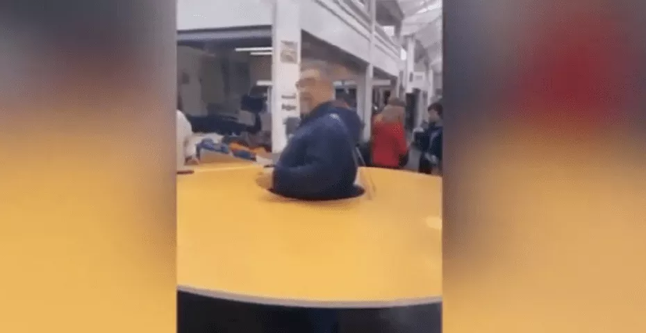 Video-snimak prvobitno objavljen na Instagramu prikazuje čoveka u jednom italijanskom marketu koji oko sebe nosi džinovski disk u pokušaju da napravi sigurno rastojanje između sebe i ostalih ljudi.