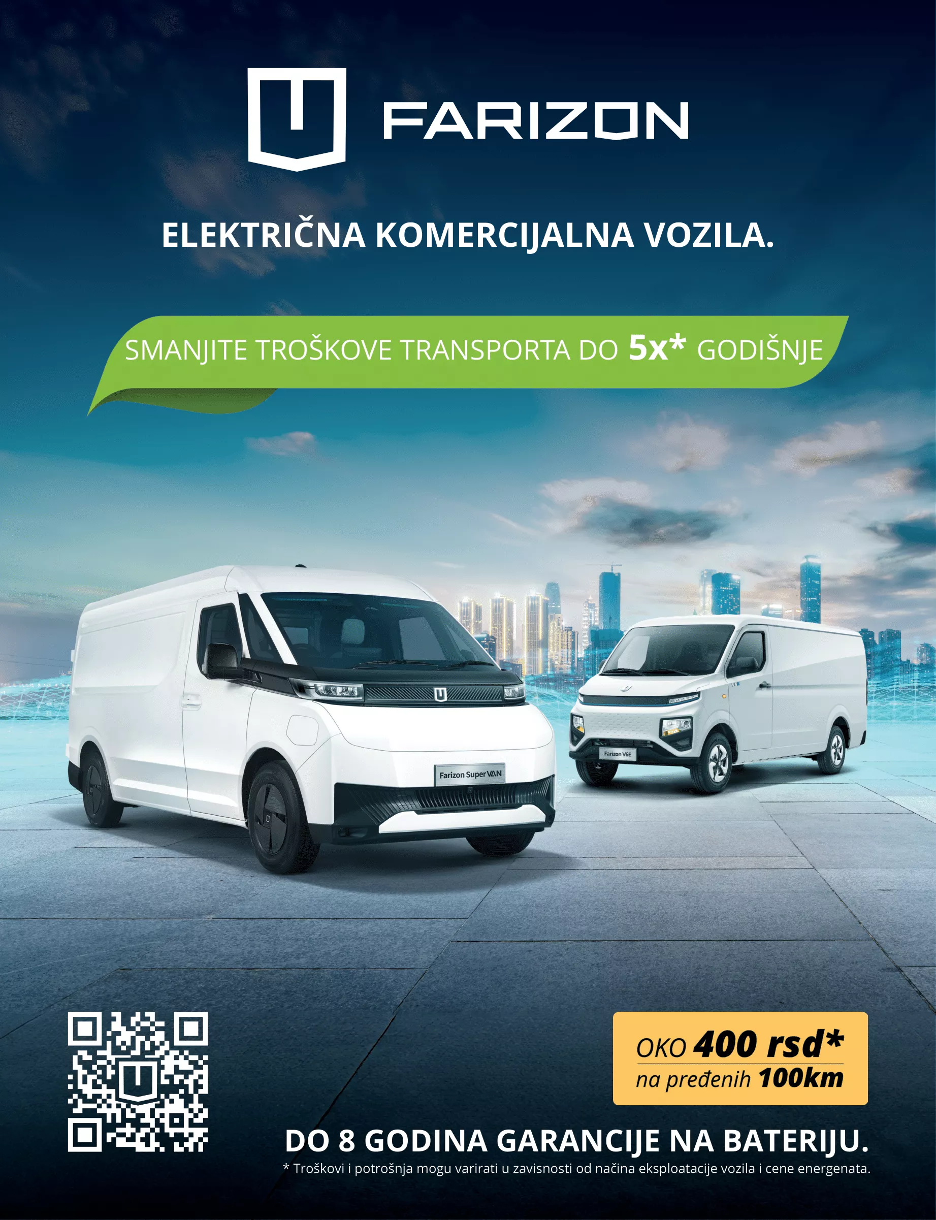 Za kompanije koje planiraju širenje flote, Farizon nudi i flotne pogodnosti pri kupovini, kao i dugoročnu servisnu podršku i garanciju na bateriju od 8 godina.