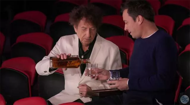 Nakon dugog izostanka iz javnosti američki kantautor i nobelovac Bob Dilan pojavio se u emisiji Džimija Felona da bi promovisao svoju liniju viskija, ali pritom nije progovorio ni reč.