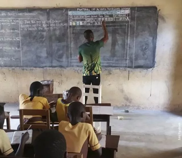 Veliki broj ljudi širom sveta oduševljen je postupkom nastavnika iz Gane koji informatiku predaje bez kompjutera, tako što učenicima na tabli crta izgled programskog prozora i objašnjava šta koja funkcija radi.