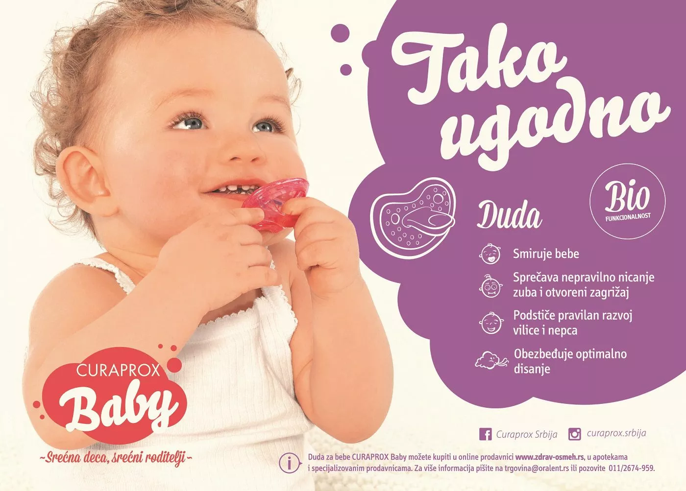 CURAPROX baby proizvodi su biofunkcionalni, podstiču prirodan rast i razvoj i deluju u savršenoj harmoniji sa prirodnim razvojem svih delova usne duplje – od vilice i zuba do disanja. Sam dizajn CURAPROX varalice se u potpunosti razlikuje od standardnih. Standardna varalica u detetovoj usnoj duplji stvara vakuum i na taj način vrši pritisak na nepce, dok CURAPROX varalica ima pljosnati deo za sisanje i bočna krilca koja vrše pritisak na vilicu i na taj način se značajno smanjuje mogućnost razvoja nepravilnosti kao što su otvoren i ukršten zagrižaj, već stimuliše njeno širenje i pravilan razvoj, osigurava optimalno disanje i smiruje bebu.