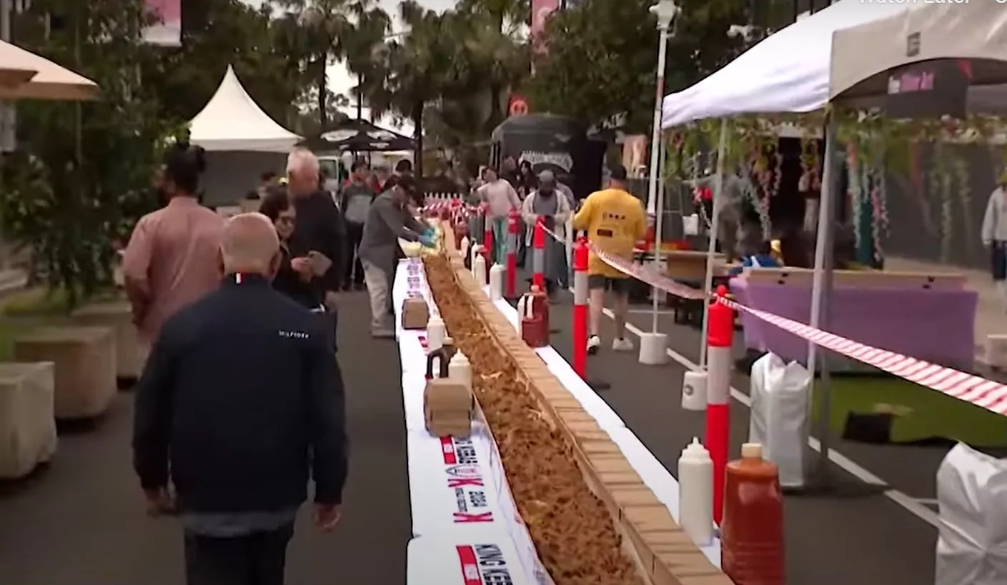 Restoran King Kebab House iz Kampbeltauna, u Novom Južnom Velsu, pripremio je 90 kilograma sirovog pilećeg i goveđeg mesa i 300 kilograma sirovog pomfrita kako bi nahranio posetioce festivala i oborio Ginisov svetski rekord. Završni kebab težio je 300 kilograma i poslužen je uz 250 kilograma pripremljenog pomfrita, čime je kompletirano ovo ogromno jelo.