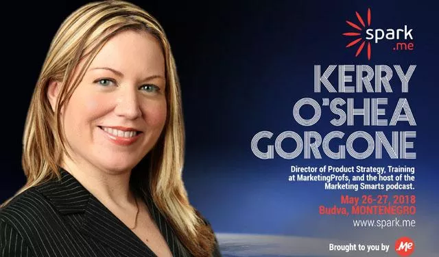 Organizacioni tim Spark.me, jedne od najvećih marketinških konferencija u Jugoistočnoj Evropi, koja se održava 26. i 27. maja u Budvi (uz seriju specijalizovanih radionica zakazanih za 25. maj), objavio je ime nove govornice na Spark.me 2018 konferenciji. U pitanju je Keri O’Šej Gorgon (Kerry O’Shea Gorgone), direktorka strategije u MarketingProfsu, vodećem izvoru informacija za više od 600.000 marketinških profesionalaca širom sveta, i voditeljka Marketing Smarts podcasta.