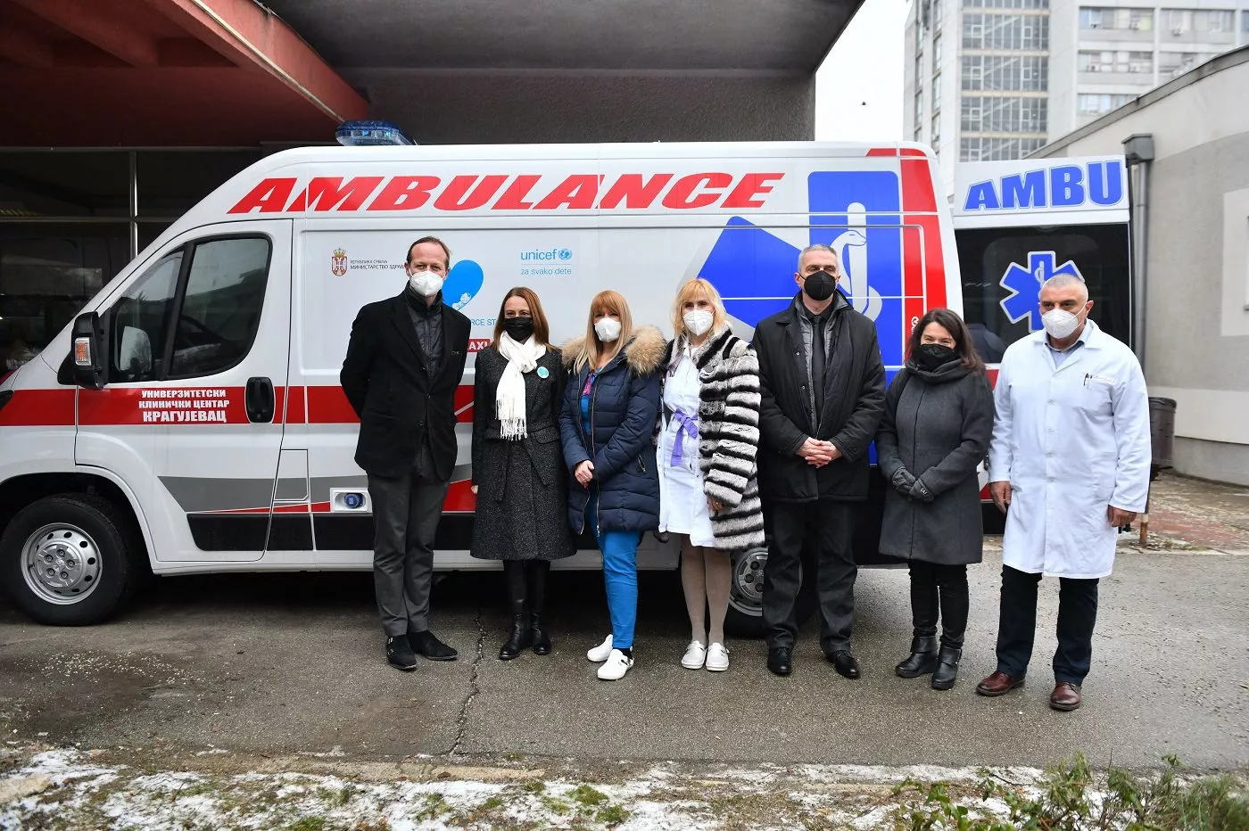 U prisustvu državnog sekretara Ministarstva zdravlja, doc. dr Predraga Sazdanovića, direktora UKC Kragujevac prof. dr Slobodana Milisavljevića i tima lekara, transportno vozilo su direktorki Klinike za pedijatriju prof. dr Anđelki Stojković zajedno uručili generalni direktor Delez Srbija Jan-Vilem Dokhejr i Deyana Kostadinova direktorka UNICEF-a u Srbiji.