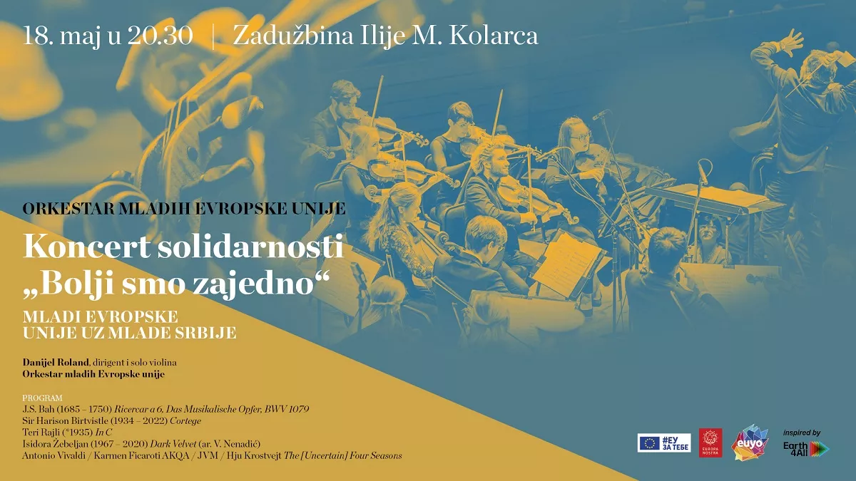 U svetlu nedavnih tragičnih događaja, ovaj koncert smo nazvali „Bolji smo zajedno“, kojim želimo da pokažemo podršku i solidarnost mladih iz EU sa mladima iz Srbije. Orkestru će se na sceni pridružiti i 29 mladih muzičara iz Srbije.