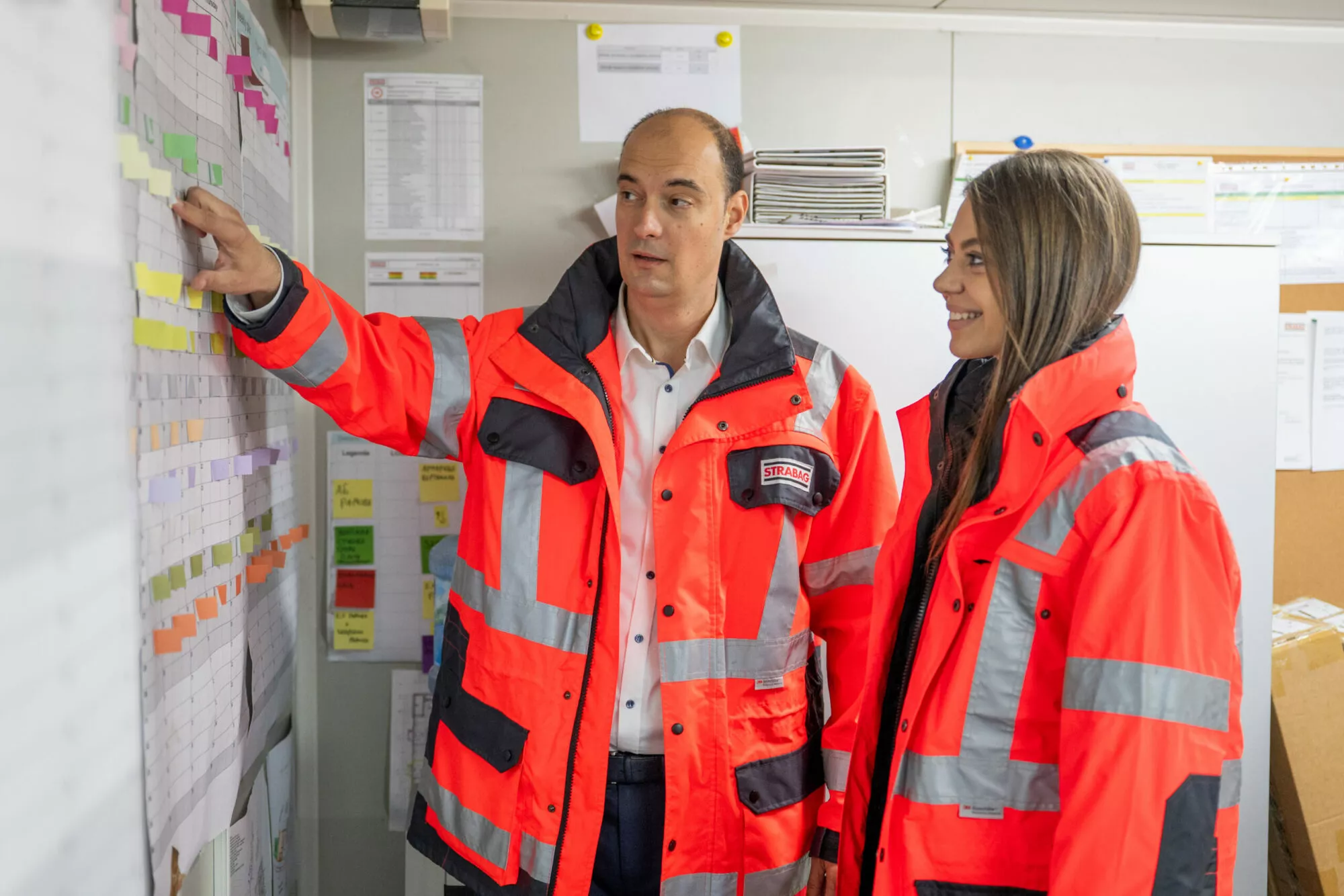 STRABAG precizno planira koji su resursi, oprema ili koraci potrebni – kada, gde i u kom obimu. Takođe, procenjuje načine na koje se gradilište može organizovati i voditi efikasnije. Na osnovu toga preduzimaju se mere za unapređenje efikasnosti i koriste LEAN metode i alati za upravljanje procesima gradnje, kako bi se sprečilo uočeno rasipanje i uskladili timovi i aktivnosti, čime se izbegavaju i prekidi u radu.