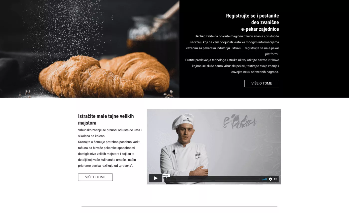 Kompanija Lesaffre napravila je portal za edukaciju pekara, tehnologa, studenata i srednjoškolaca – budućih pekara, prvi takve vrste u našoj zemlji. Predavači su veliki autoriteti iz sveta pekarstva i proizvodnje, menadžeri proizvodnje, ali i pobednici i žiri takmičenja Pekarijada. Platforma E-pekar je jedinstvena prilika da nauče nešto novo i da unaprede svoje već postojeće veštine kroz webinare za studente tehnologije i đake srednjih stručnih škola, i video sadržaje za pekare. Predavanja su iz oblasti izrade hleba i različitih vrsta peciva.