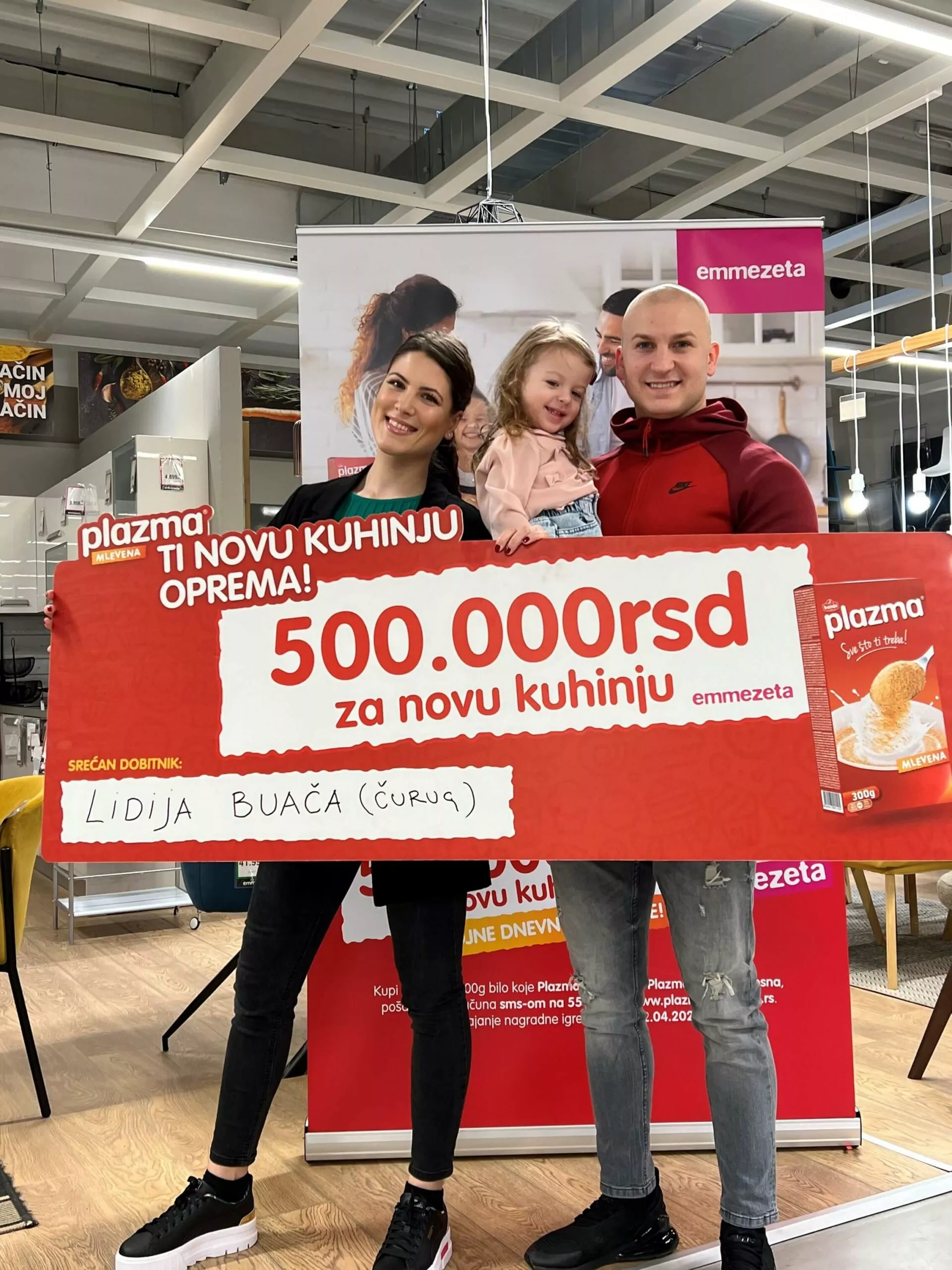 U okviru prve nagradne igre nezamenljivog sastojka raznih poslastica – Plazma Mlevena pod nazivom “Plazma Mlevena ti novu kuhinju oprema”, izvučena je dobitnica prvog od pet Emmezeta vaučera u vrednosti od 500.000 dinara za opremanje kuhinje.