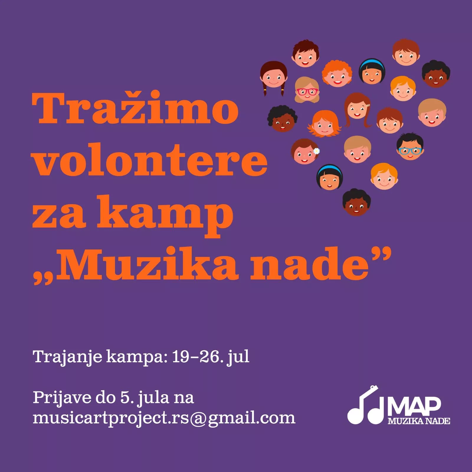 Ukoliko želiš da budeš deo MAP muzičke priče, voliš rad sa decom, druženje i upoznavanje sa ljudima iz sveta muzike i ne plašiš se da zasučeš rukave, pošalji imejl do 5. jula na adresu musicartproject.rs@gmail.com