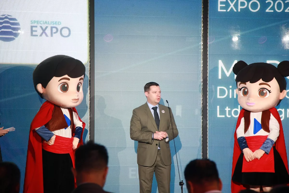 Beograd, 29.01.2026. – Svecana ceremonija proglasenja imena maskota Ekspa 2027 Beograd odrzana je danas u Ekspo 2027 Plejgraundu u Hali 5 Beogradskog sajma. Maskote specijalizovane izlozbe Ekspo 2027 Beograd imace imena Rastko i Milica. Obratili su se ministar finansija Sinisa Mali i direktor kompanije EXPO 2027 d.o.o. Beograd Danilo Jerinic. (BETAPHOTO/MILOS MISKOV)