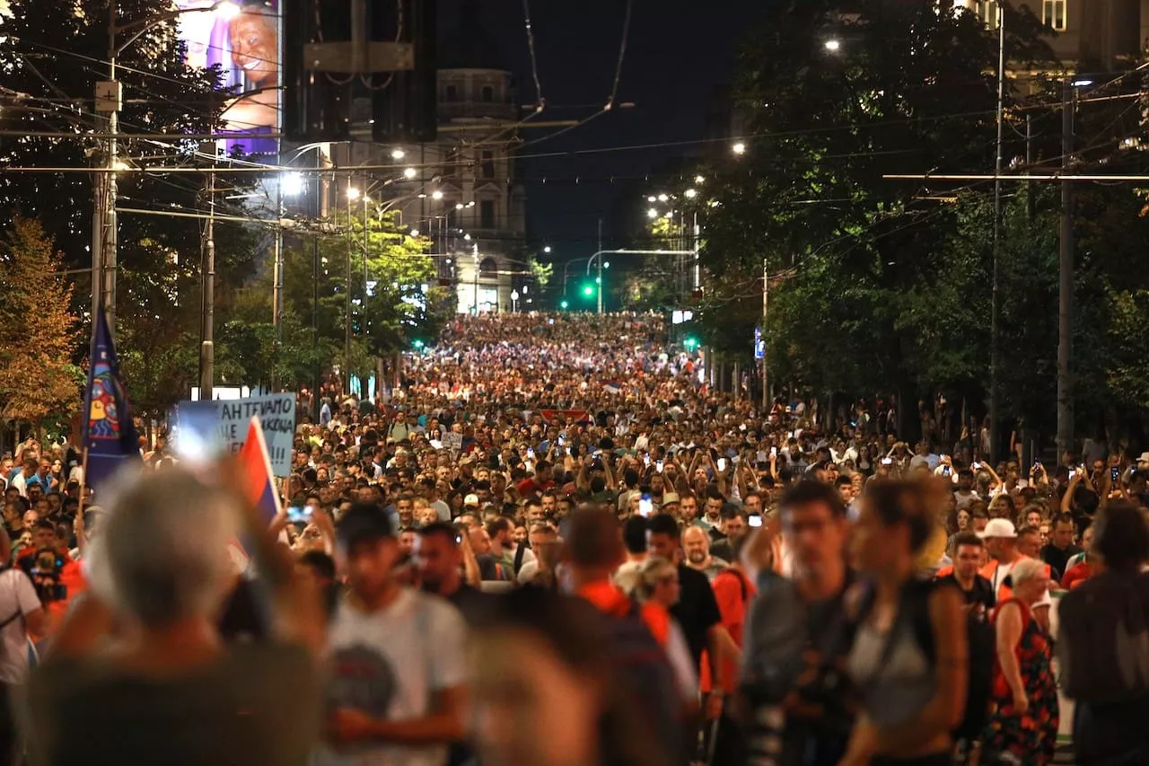 Beograd, 10.8.2024. – Protest zbog najavljenog rudaranje litijuma i bora u Srbiji u centru Beograda na Terzijama. (BETAPHOTO/MILOS MISKOV)