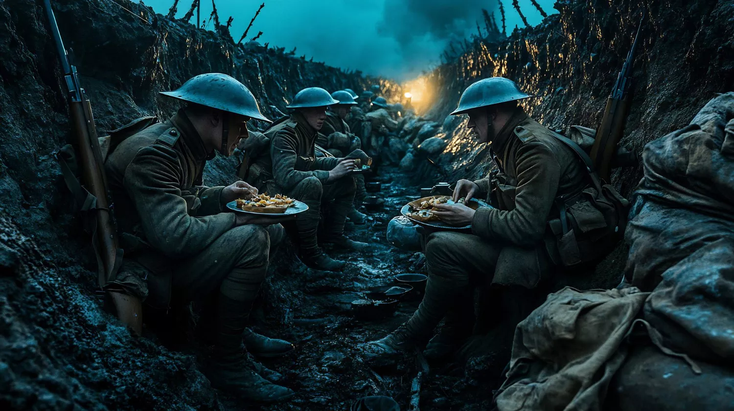 Rat je tada bio tek u povoju. Vojnici još nisu jedni u drugima videli bezlične neprijatelje, već mlade ljude u istoj nesreći. Rovovi u severnoj Francuskoj bili su toliko blizu da su se mogli čuti glasovi, kašalj, pa čak i smeh sa druge strane. Umorni, promrzli i neispavani, svi su živeli isto: borba od zore do mraka, skroman obrok, obilazak ničije zemlje u potrazi za ranjenima i mrtvima, pa san, ako bi uopšte došao.