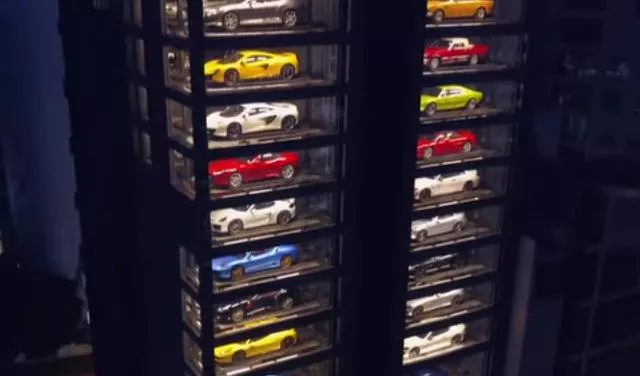 U staklenim kutijama nalazi se 60-ak luksuznih automobila, od novijih modela poput Lamborginijevog Aventadora, do nekih klasičnih modela, kao što je Ferari 512M.