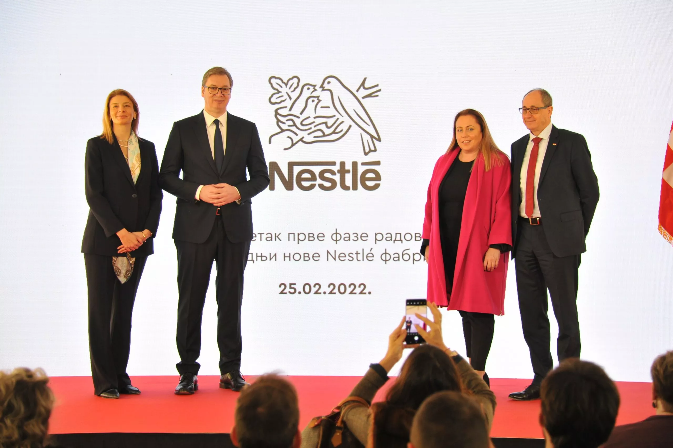 Završetak prve faze izgradnje nove Nestlé fabrike u Srbiji, obeležen je u Surčinu u prisustvu predsednika Republike Srbije Aleksandra Vučića, NJ. E. Ursa Šmida, ambasadora Švajcarske u Srbiji, Gorana Vesića, zamenika gradonačelnika Beograda, Stevana Šuše, predsednika Opštine Surčin.